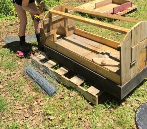Olivia is persistent in a subtle and creative way. She stopped asking and started building. Beneath her 13 year old hands, an elaborate chick coop took shape. She amazed us with her construction project.