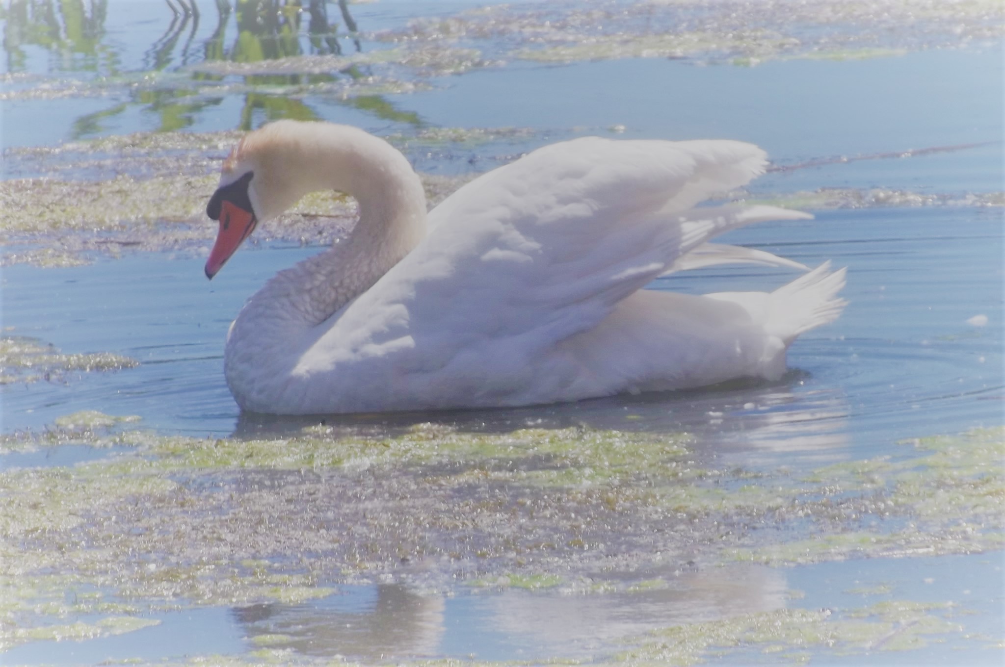 It was, indeed, a beautiful swan, gracefully preening itself close to the shore. Debris littered the edge of the water. The girls watched quietly as it stretched a wing and set sail. We stood there until it became a dot of brilliant white against the horizon.