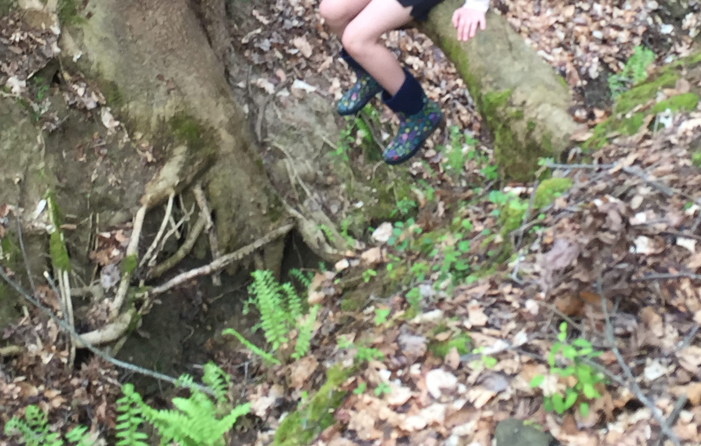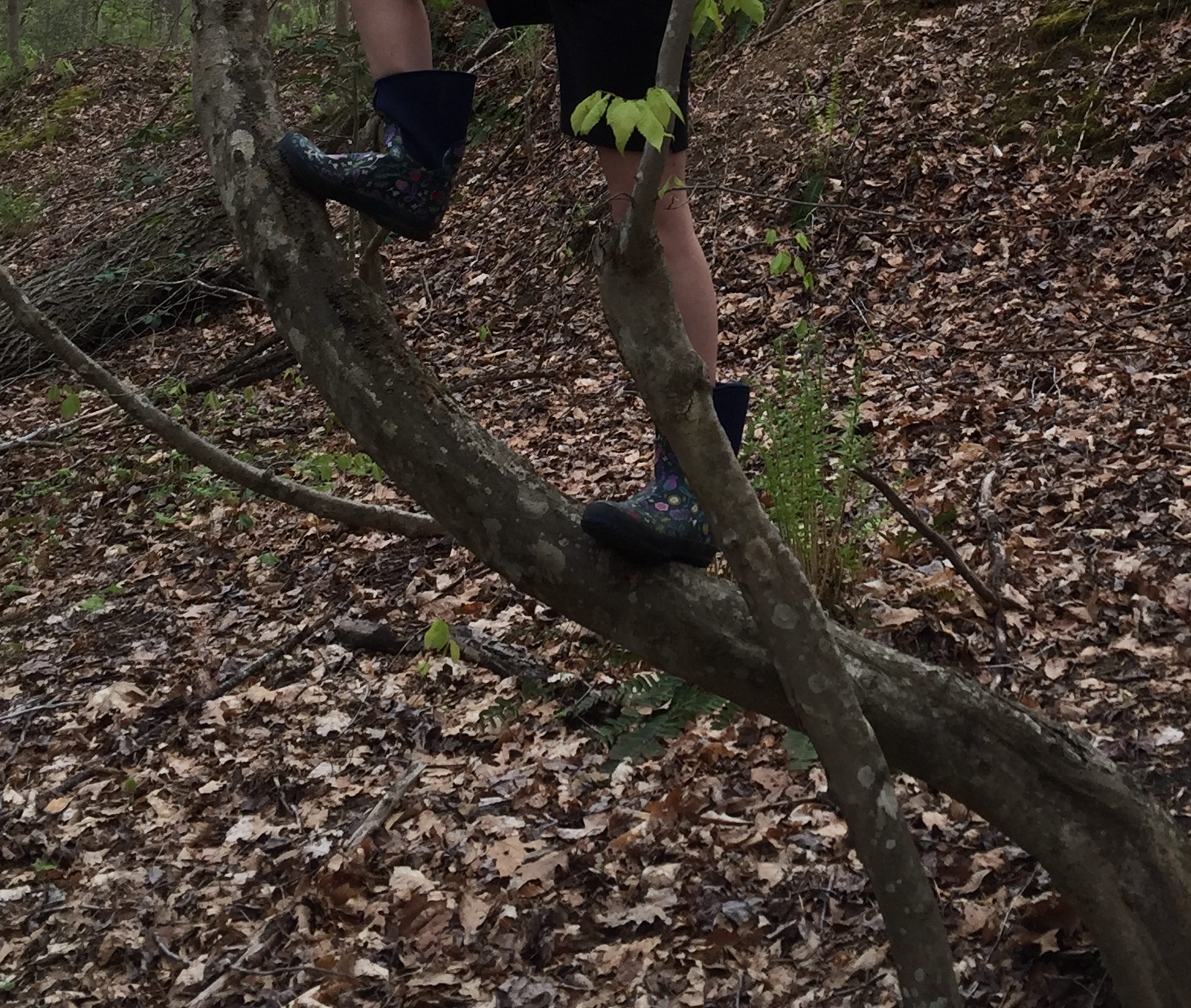 Boots on, Morgan, Olivia and I journeyed out. As we entered the woods across from our house, an idea emerged. I could teach them about the impact of natural and human forces on our world. Brilliant!
