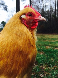 Her name is Ginger and she is our pet hen, a Buff Orphington of noble distinction.